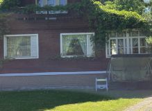 Двух этажный частный дом старой постройки с терассой, находится в лесном массиве, есть парковка, ухоженный участок.