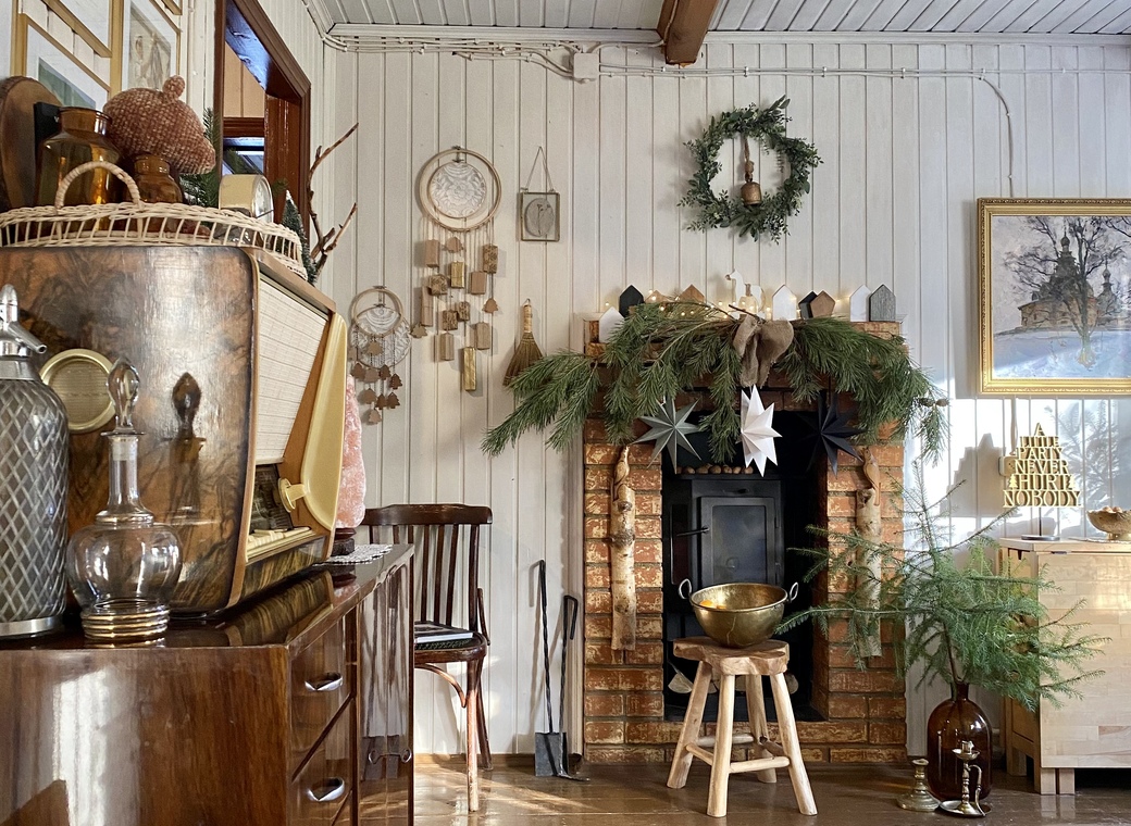 Красивый двухэтажный деревянный дом, с винтажным интерьером.
