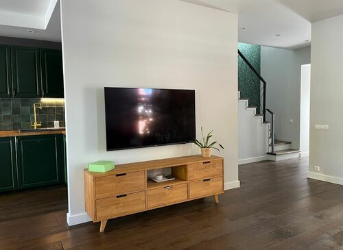 • Особенности: Большая кухня , Окна в пол , Детская , Кабинет , Кухня-гостиная
