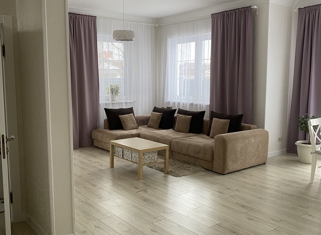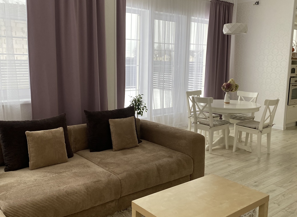 Дом 180 м2, под съемку 1 этаж — 90м2: гостиная 50 м2, спальня 12 м2, с/у, коридор, котельная, терраса