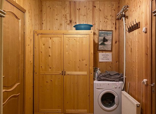 В доме находится камин, на территории круглая баня.