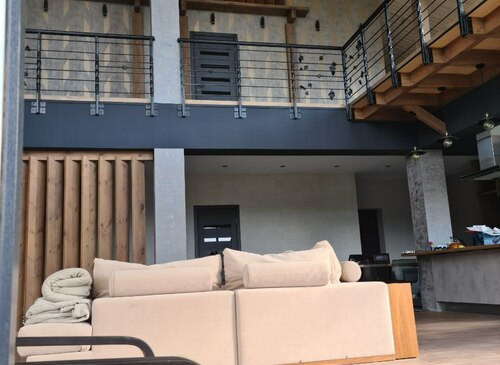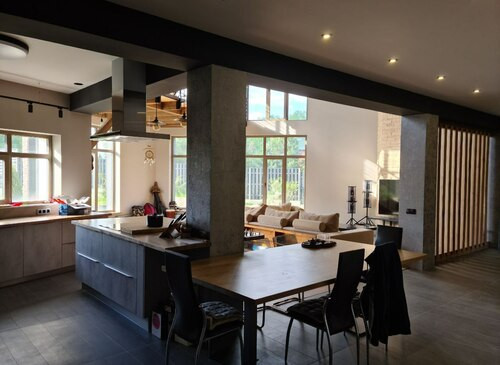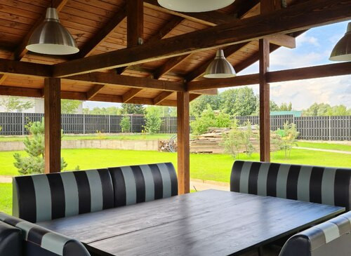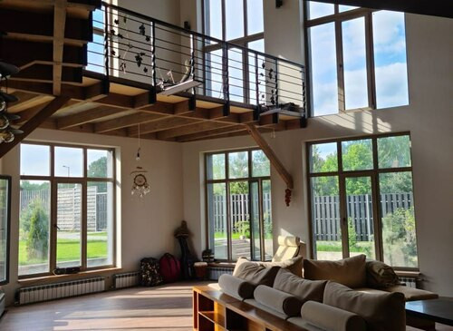 Новый лофт класса ВИП с выходом на озеленёную береговую зону и пляж водохранилища, с размещением до 35 гостей за праздничным столом . На ночь до 20 гостей ..Во дворе летняя беседка на 40 мест. На первом этаже банкетный зал 120 кв. м. с TV , с переходом в кухонную зону, со всей бытовой техникой, посудой и столовыми приборами. Сауна, русская баня с комнатой отдыха. Выходные дни обсуждаются по договорённости, в зависимости от сезона, числа гостей и периода аренды.