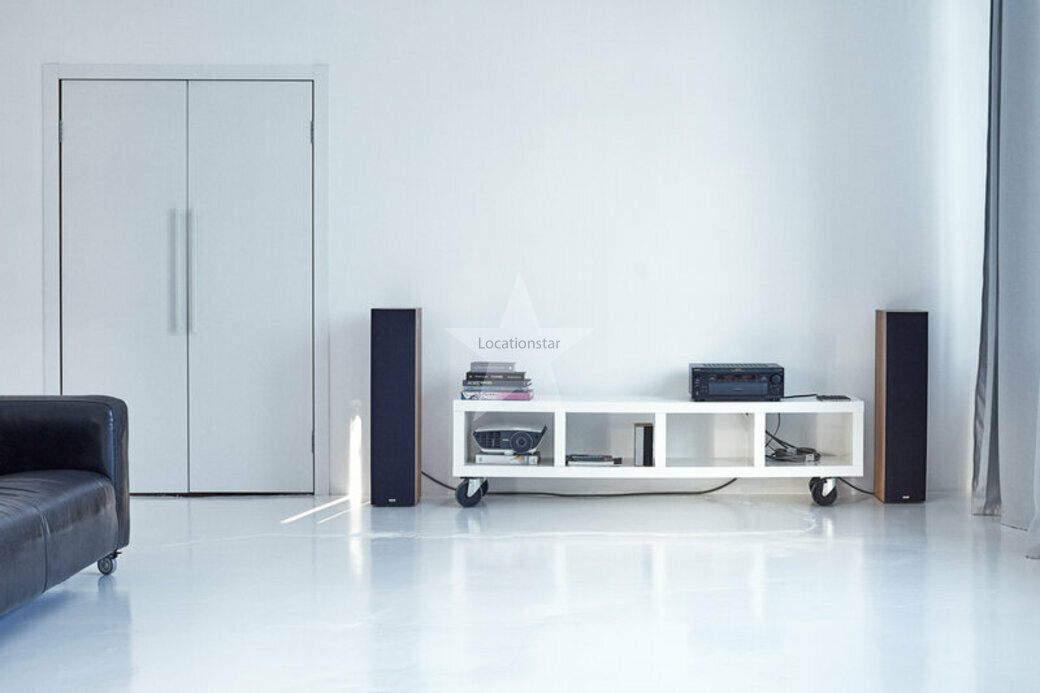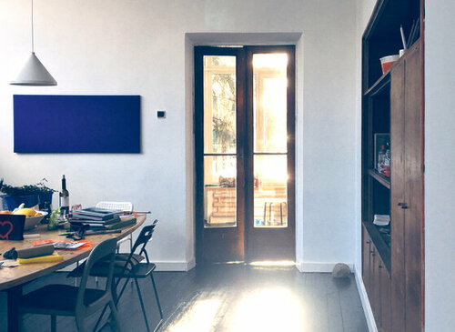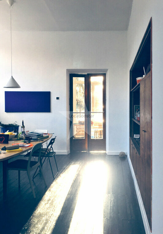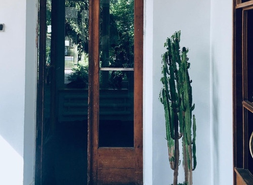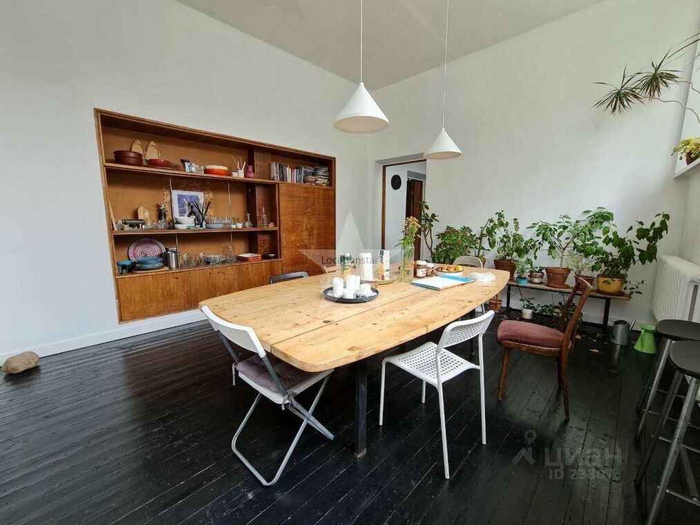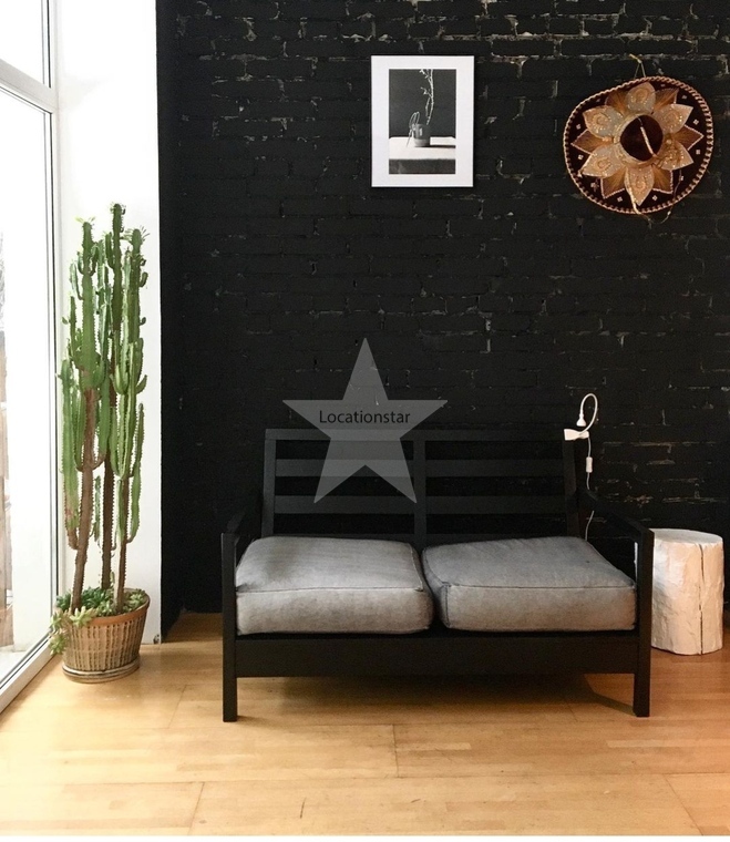 Дом конструктивистской архитектуры с четырехметровыми потолками и большими окнами. Отделка под минималистический лофт. Много света в каждом помещении. Широкая деревянная лестница на второй этаж, который используется как выставочное пространство. Также наверху находятся три спальни. Самая большая имеет балкон 12 м2, выходящий на тихий, заросший деревьями участок.