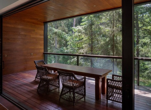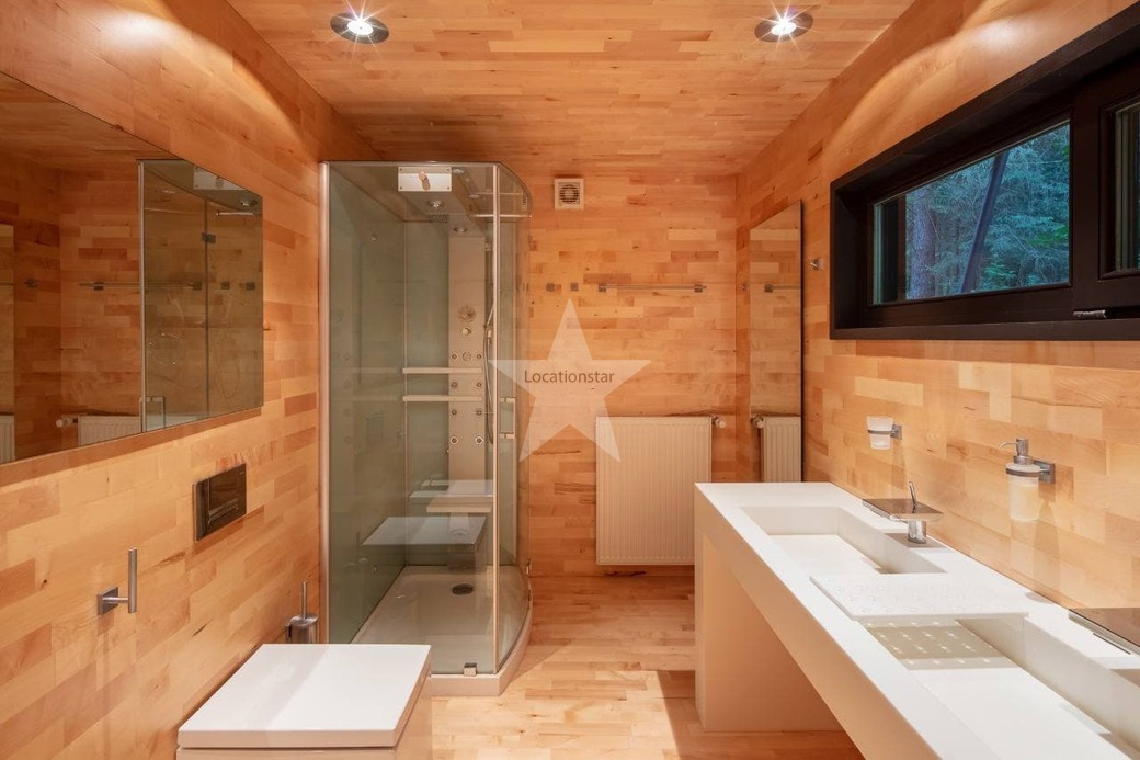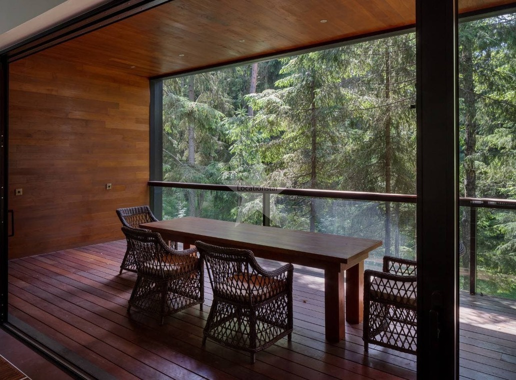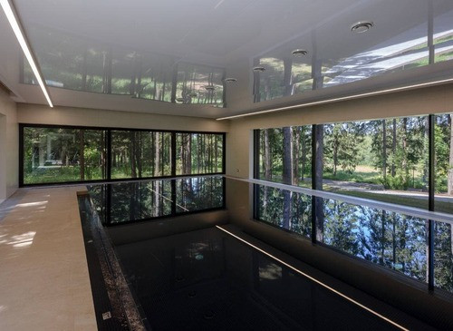 Бассейн: да (7 на 11). Бассейн с бортами уровнем выше пола, борта прозрачные, эффект что ты плаваешь в озере в лесу.