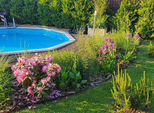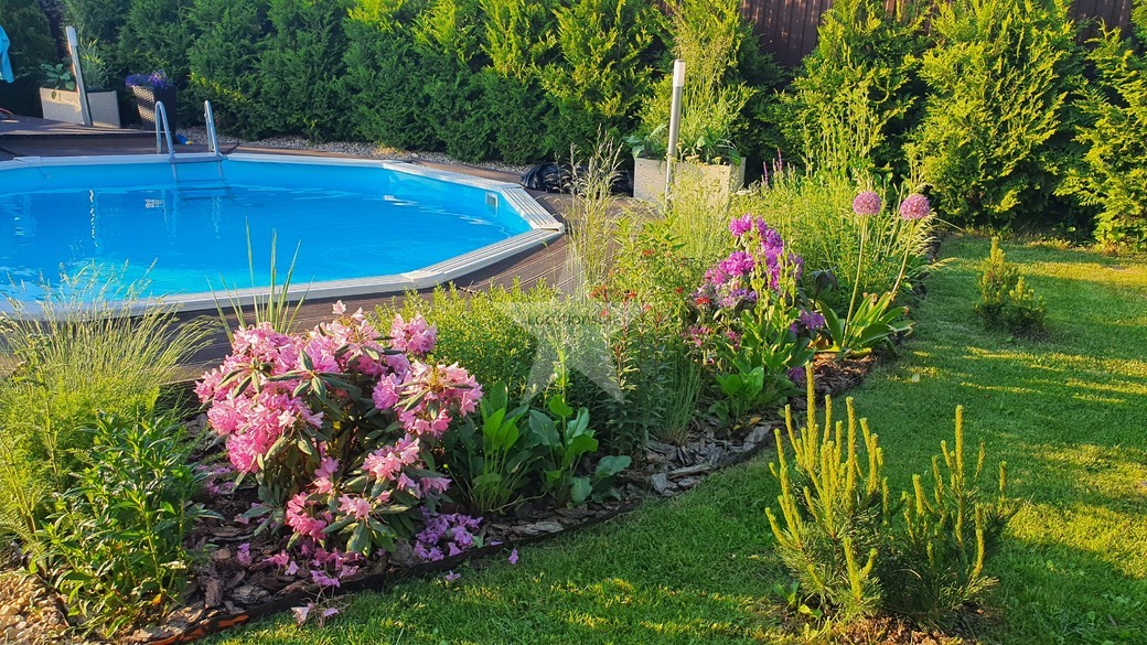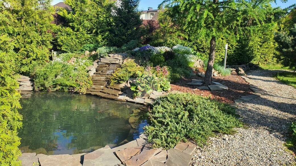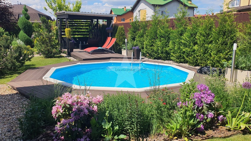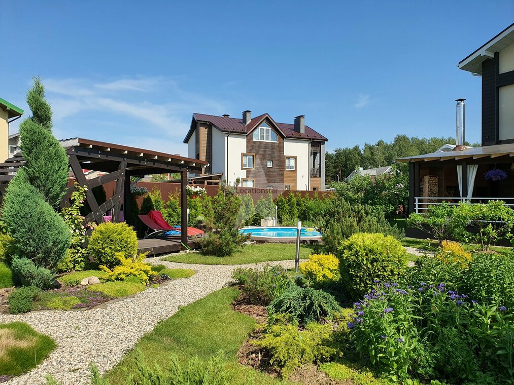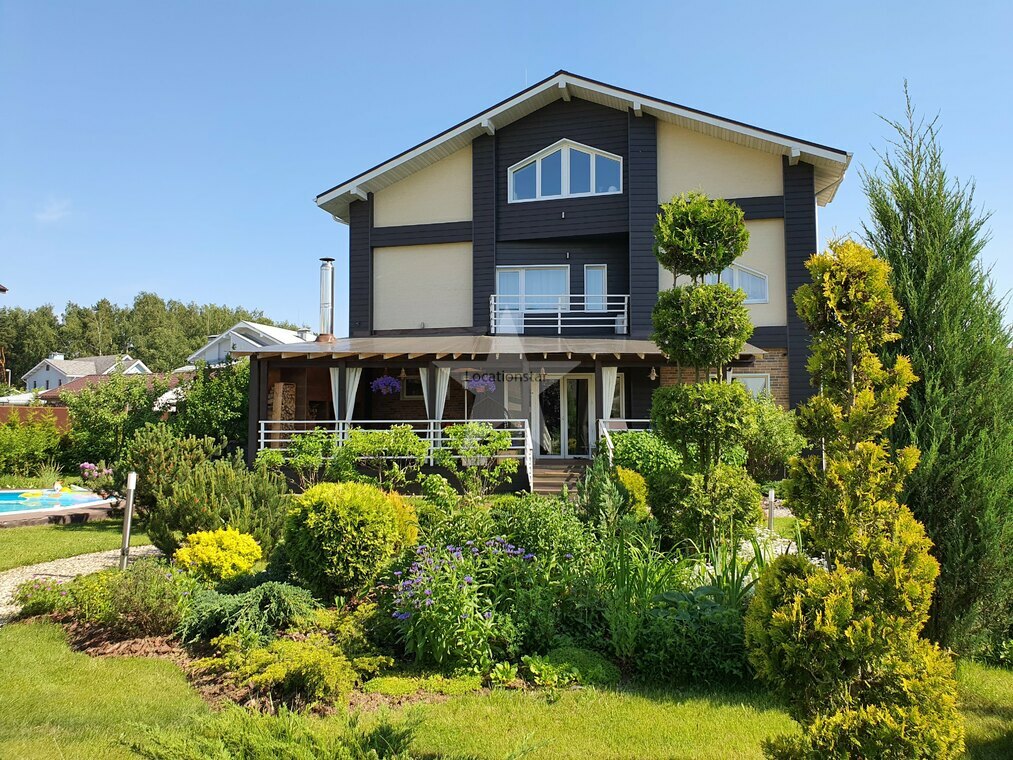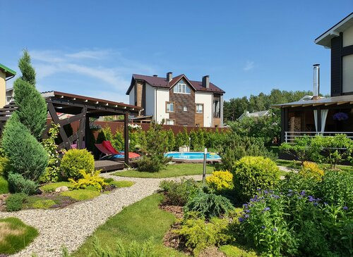 Коттедж для киносъёмок готов!Ландшафтный дизайн на участке, бассейн на улице, беседка.
