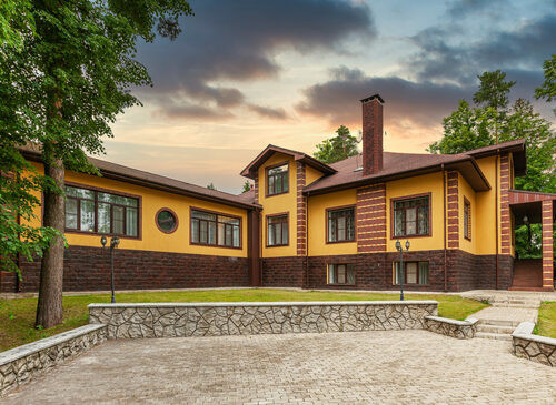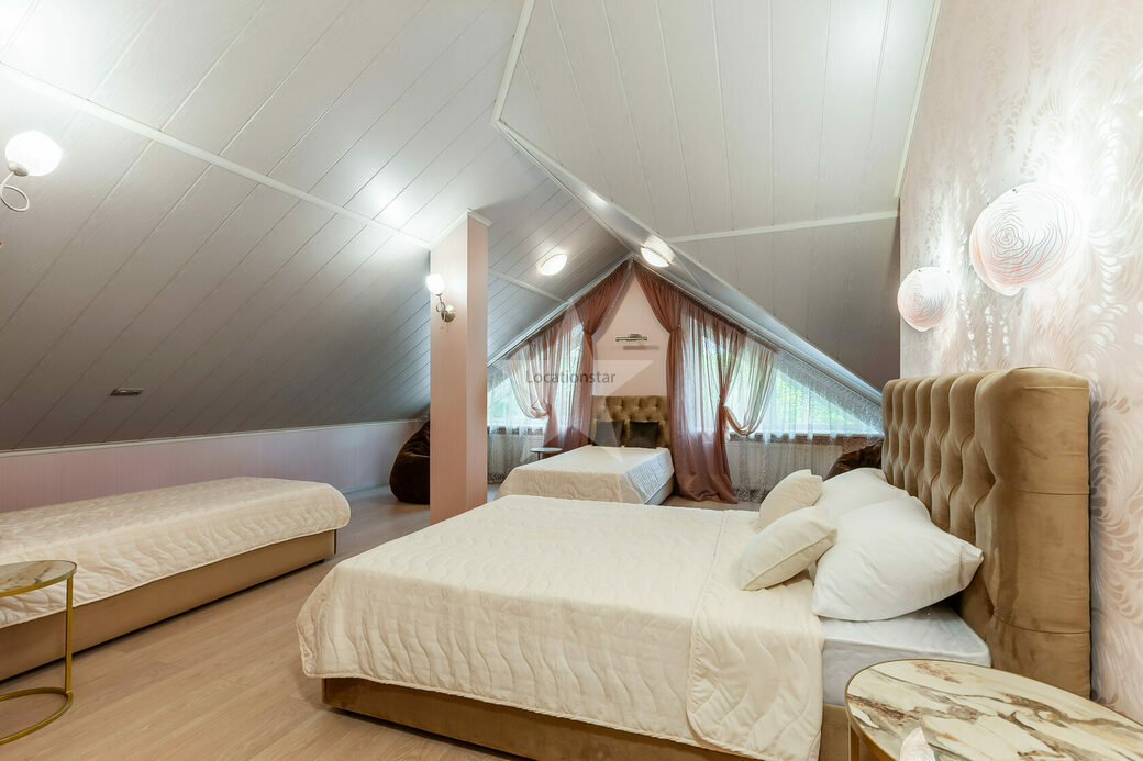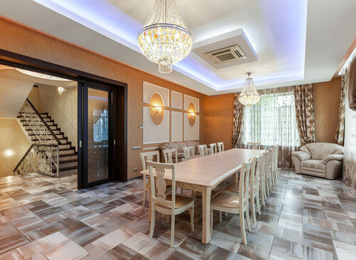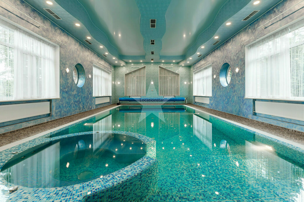 Коттедж в 19 км от МКАДа с SPA-комплексом, бассейном, сауной и джакузи, караоке-залом, бильярдом, мангальной площадкой. 6 спален(у каждой спальни своя цветовая гамма), 5 ванных комнат, обеденная зона, много пространства.