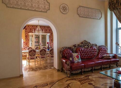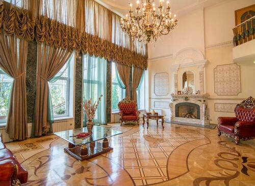 -Уютный,трехэтажный особняк для сьемок. 800 кв. м. Дизайн дома выполнен в помпезном стиле, в доме дорогая отделка, мрамор, оникс, змеевик, дорогие сорта дерева