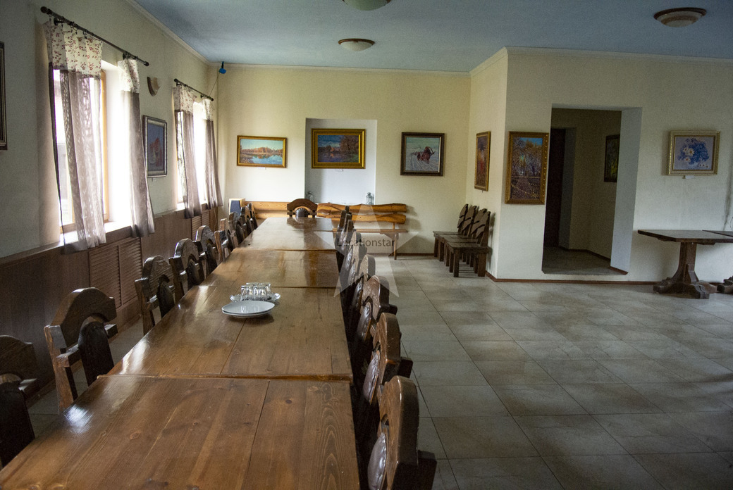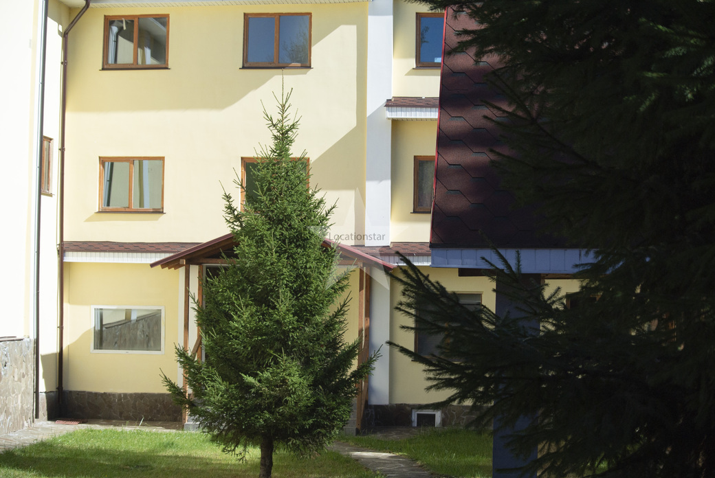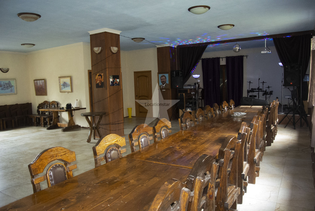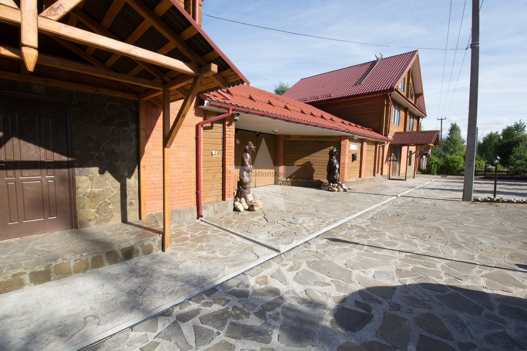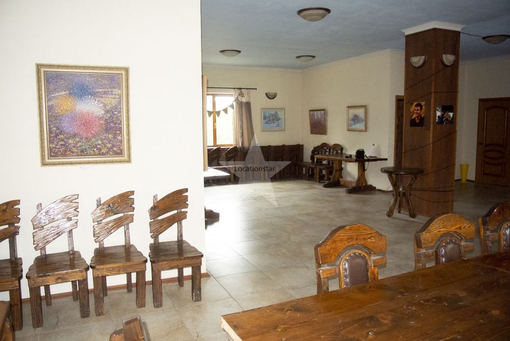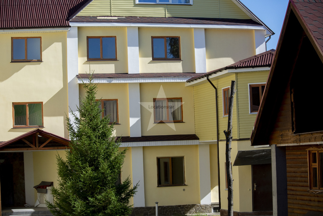 В доме — гостиничные номера, два ресторана, караоке,бассейн,баня,