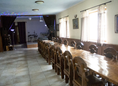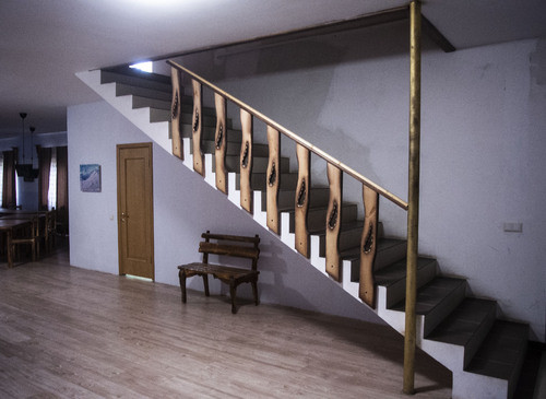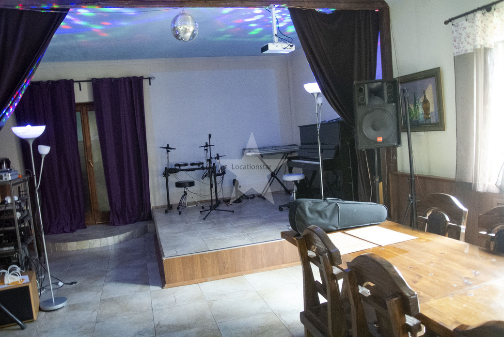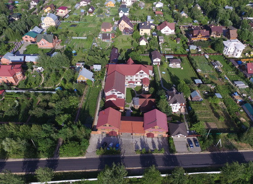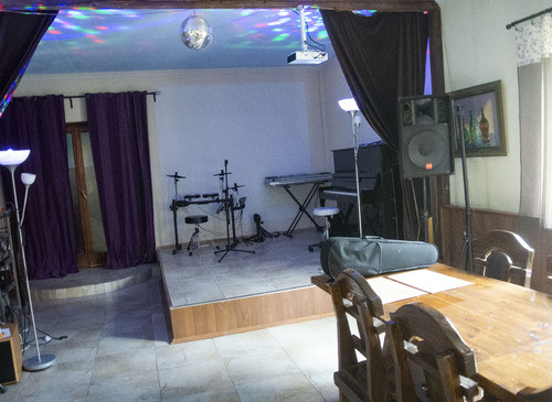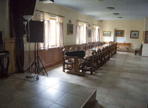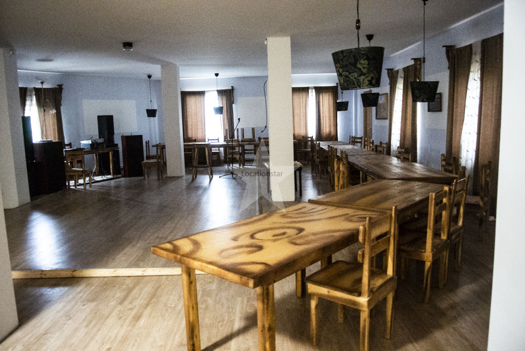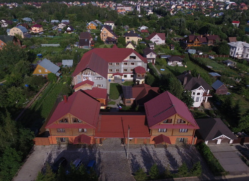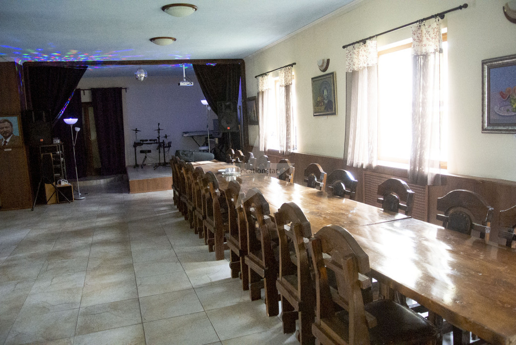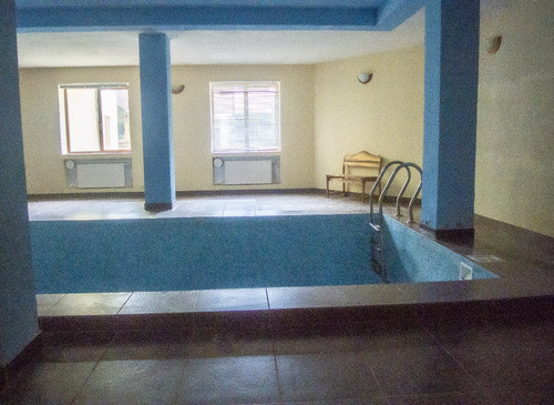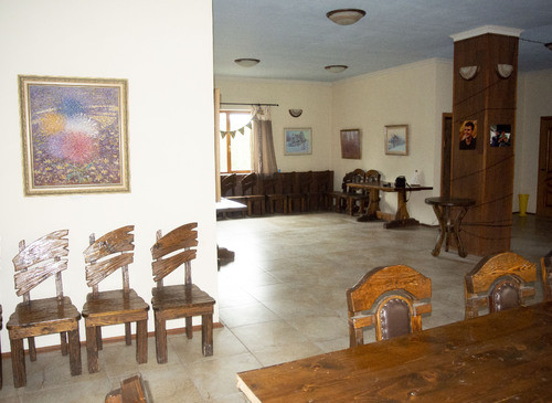 В доме — гостиничные номера, два ресторана, караоке,бассейн,баня,