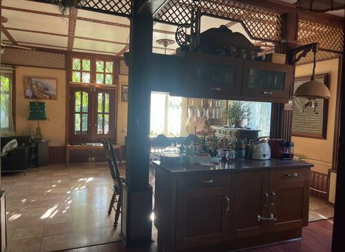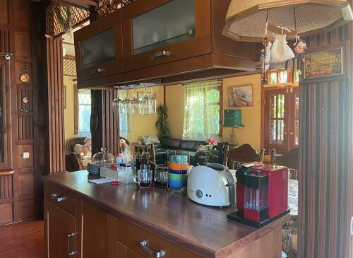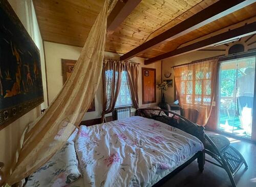Неординарный дом, недалеко от Москвы выполнен в азиатско-тайском стиле.В солнечном, светлом просторном доме расположилась: кровать с балдахином, детская, большая ванная комната, мебель из ротанга на террасе.