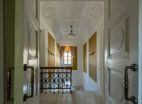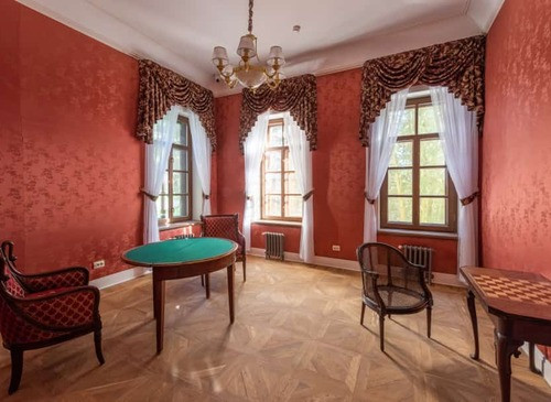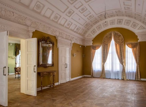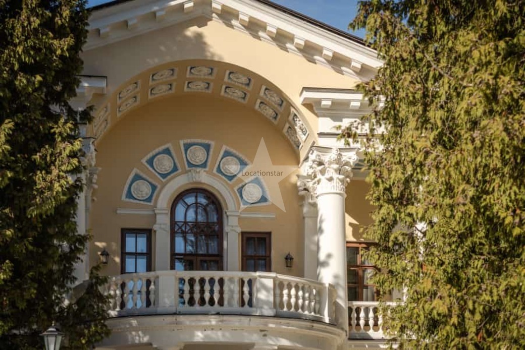 Окна в пол , Большой балкон , Гардеробная , Кабинет , Парадная лестница , Терраса , Эркер , Вид из окна , Музей , Столовая , Зал Торжеств , Колонны