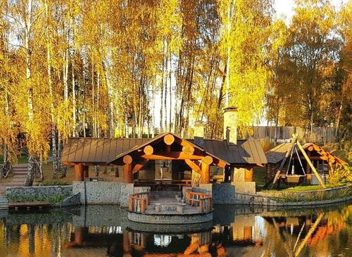 Усадьба расположена на берегу рузского водохранилища в 120 км от Москвы. Общая площадь участка - 12 га. На территории расположено четыре деревянных дома, две традиционных русских бани, живописное озеро, летняя кухня и зимовье. Дома и бани выполнены из уникальньных бревен сибирского кедра большого диаметра (от 30 до 80 см).