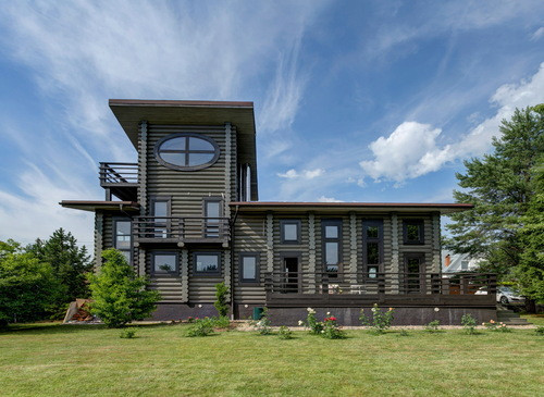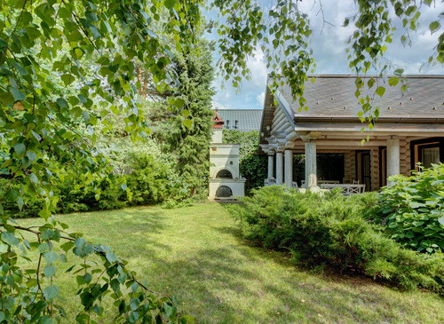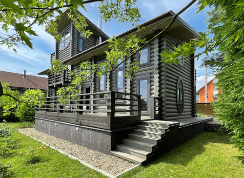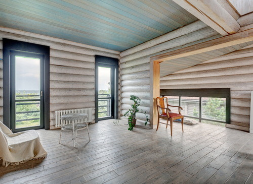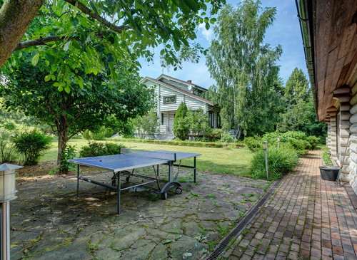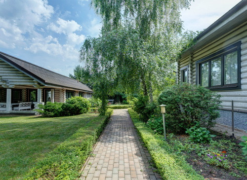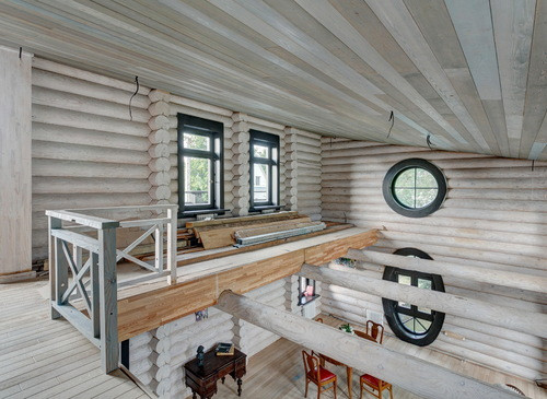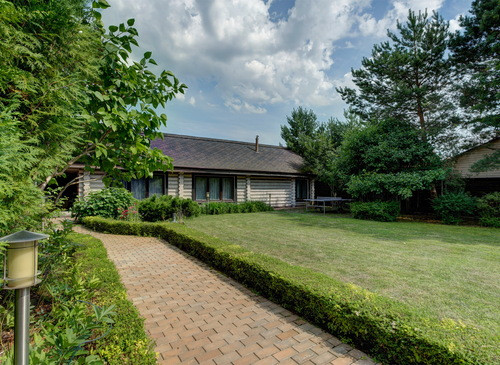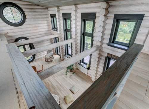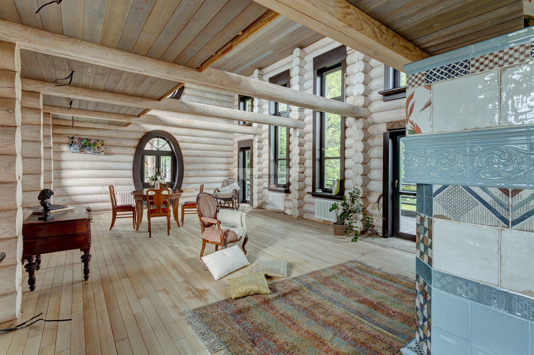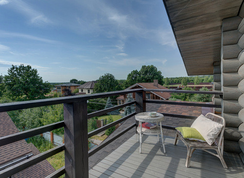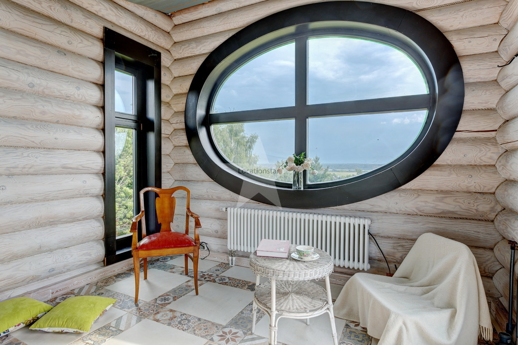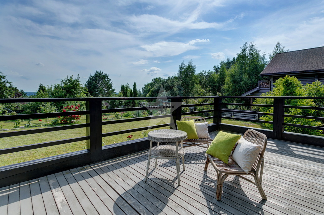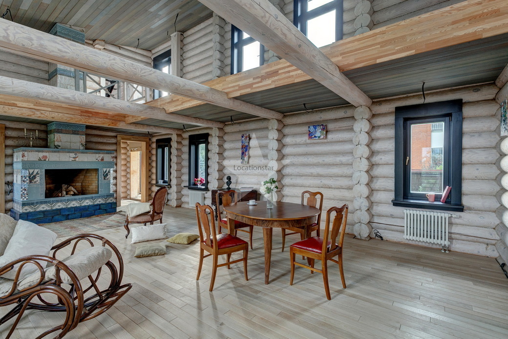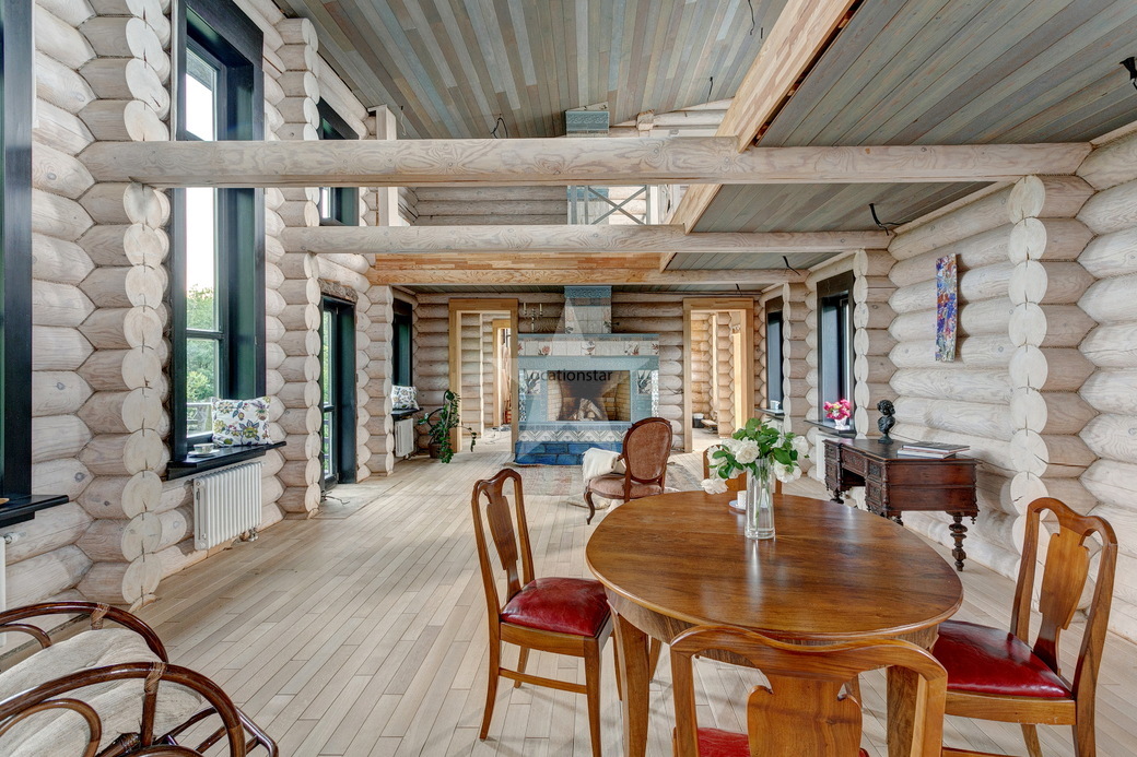 Трехэтажный деревянный дом в современном стиле с верандой, камином и большим садом. Со второго этажа внутренней часть дома можно наблюдать уютную гостиную первого этажа. С балконов открывается великолепный деревенский пейзаж с полями.Дом является гостевым, мебелью и предметами интерьера его можно наполнять под настроение и задачи (вашими, либо из основного дома. В наличии рояль и мн. другое)