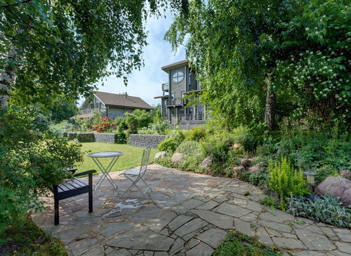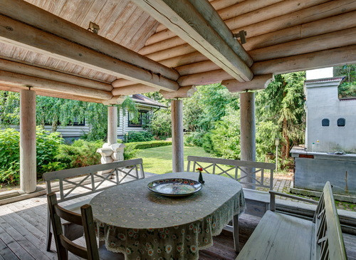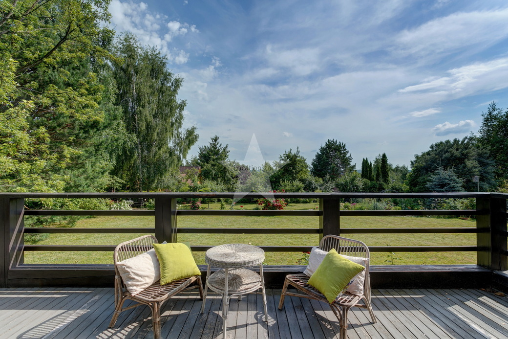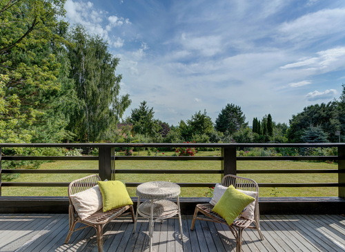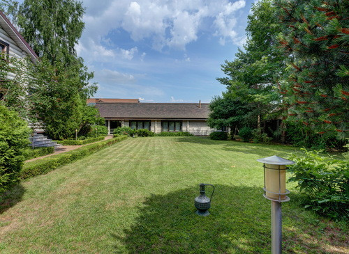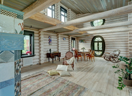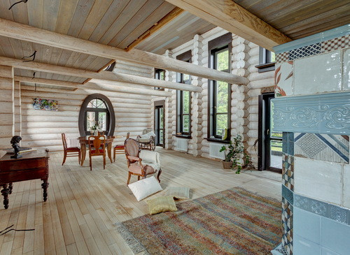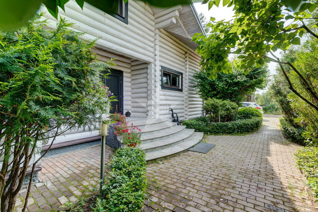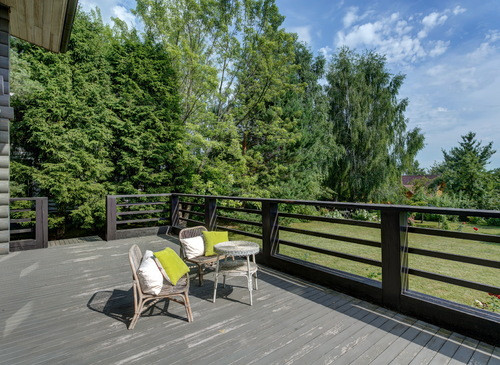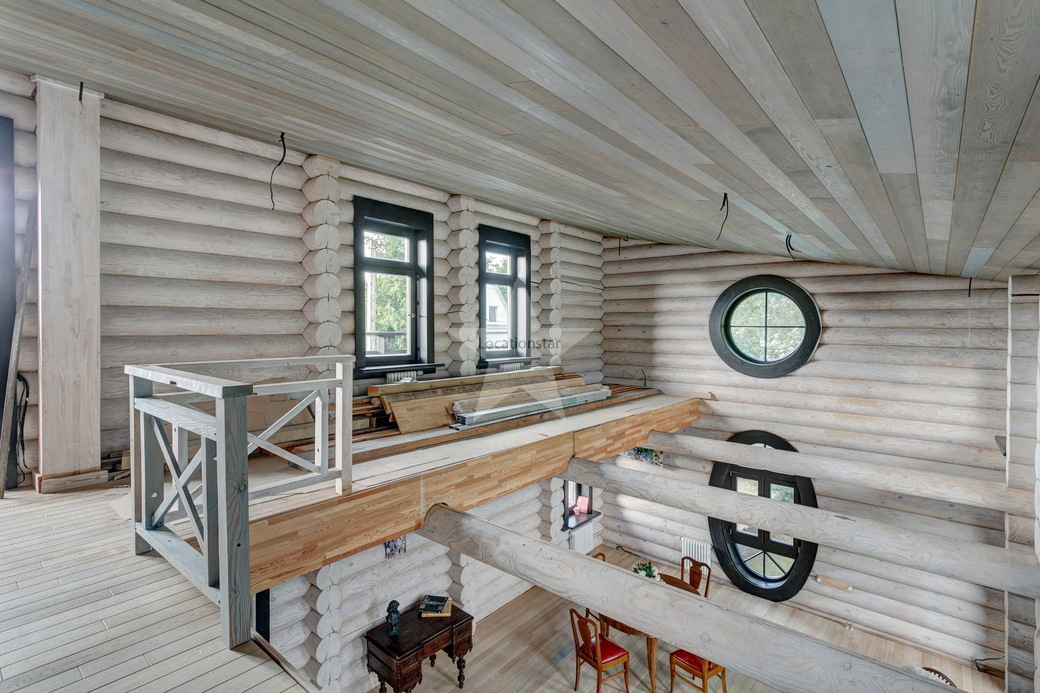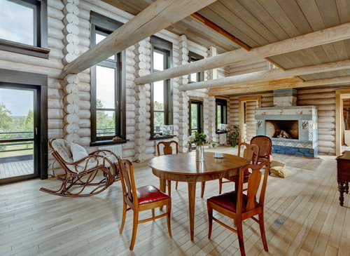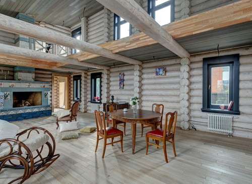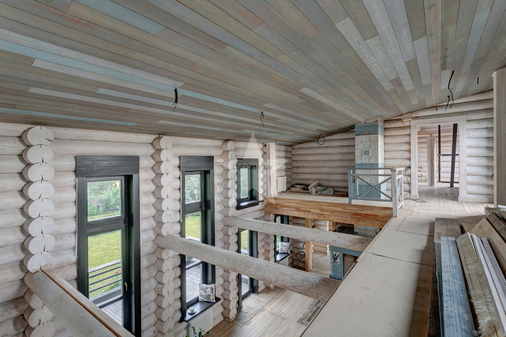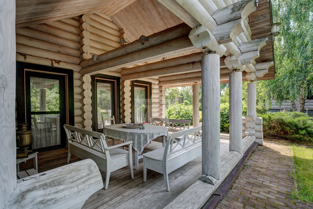 Трехэтажный деревянный дом в современном стиле с верандой, камином и большим садом. Со второго этажа внутренней часть дома можно наблюдать уютную гостиную первого этажа. С балконов открывается великолепный деревенский пейзаж с полями.Дом является гостевым, мебелью и предметами интерьера его можно наполнять под настроение и задачи (вашими, либо из основного дома. В наличии рояль и мн. другое)