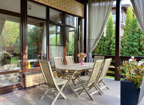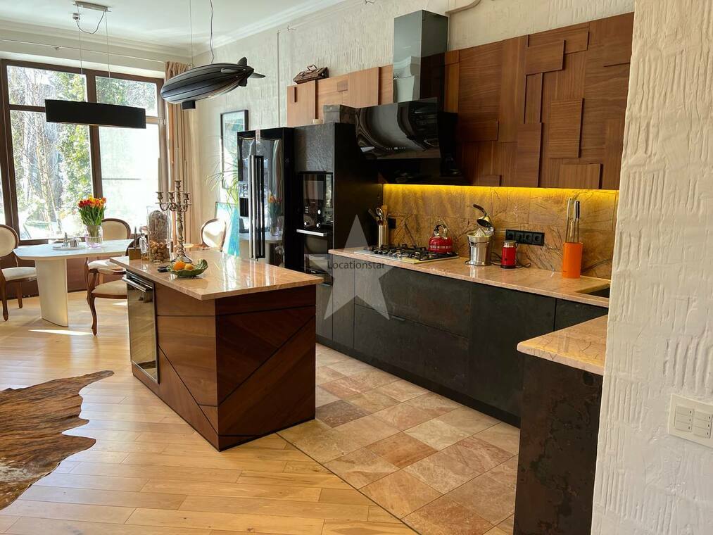 - Особенности: Большая кухня , Островок на кухне , Спортзал , Зона Барбекю , Детская , Кабинет , Кухня-гостиная , Спальня , Терраса , Вид из окна , Столовая