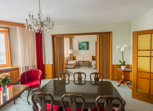 - Особенности: Камин/печь , Спортзал , Баня/СПА/Хамам , Большая ванная комната , Бассейн , Рояль/пианино , Барная стойка , Библиотека , Гардеробная , Спальня , Терраса , Эркер , Вид из окна , Зал Торжеств