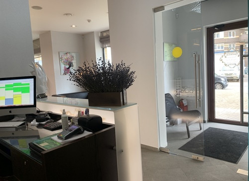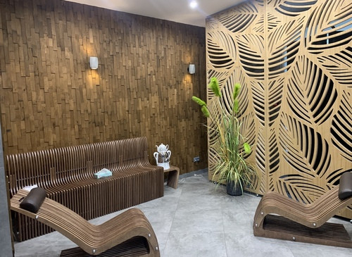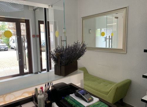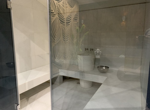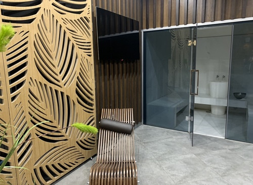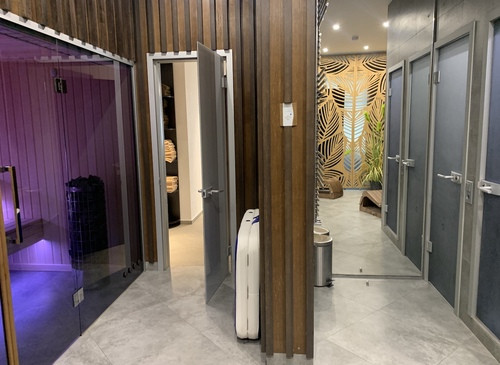 на первом этаже располагается СПА салон красоты в киношной цветовой гаммезона ресепшн, СПА, и общий зал.