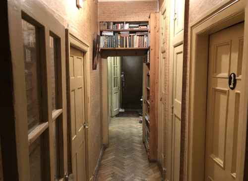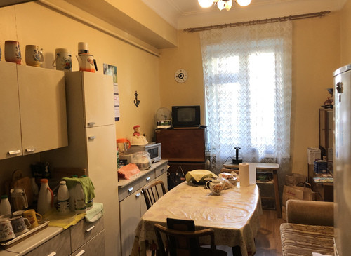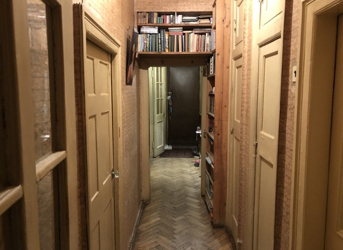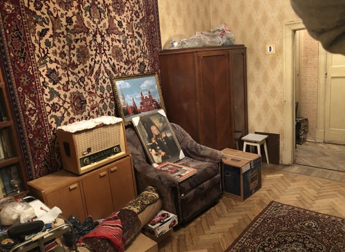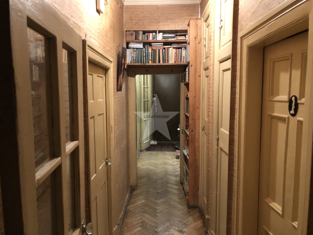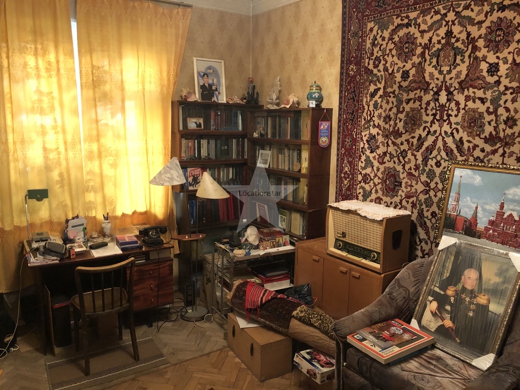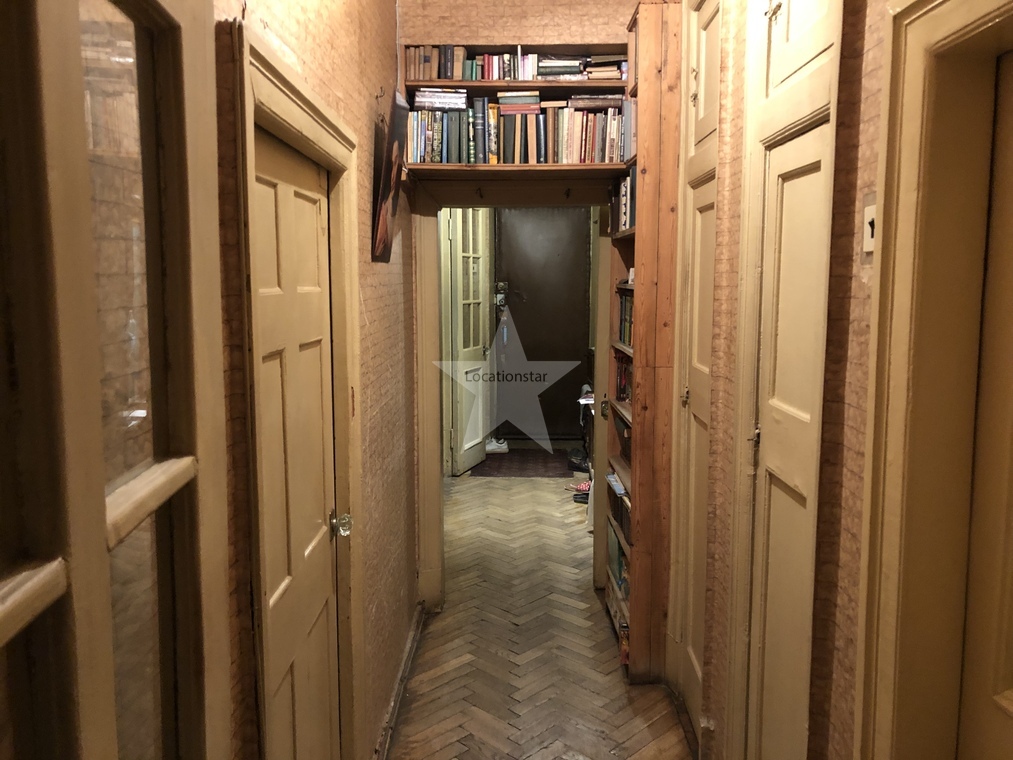 Для киносъемок предлагается квартира в Сталинке. Ремонт 70-80 годов( за исключением кухни и санузла), историческая мебель и реквизит. Есть потайная дверь между комнатами.Длинный коридор.