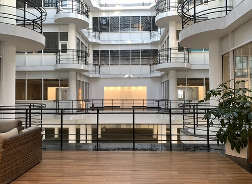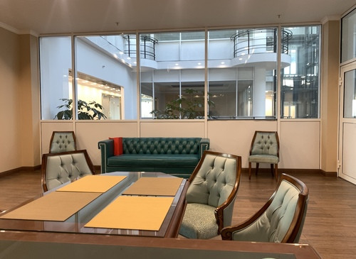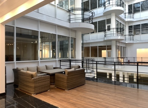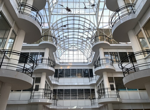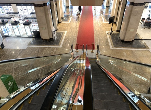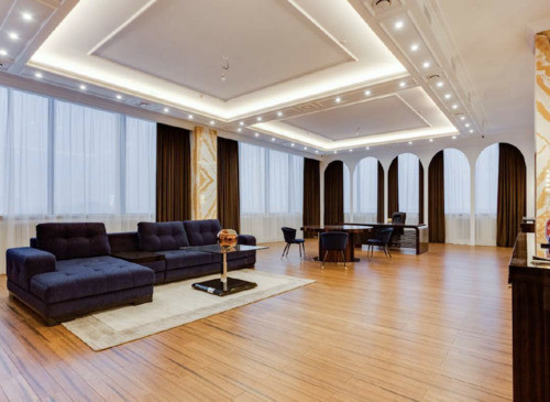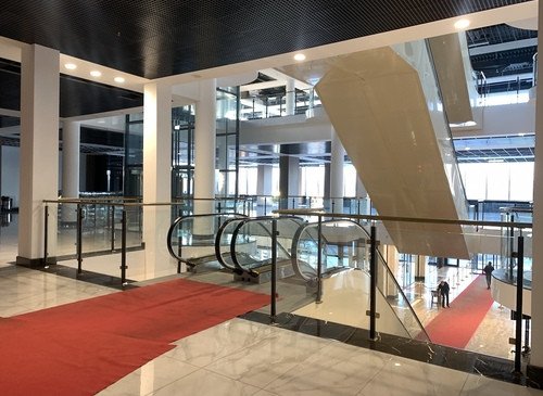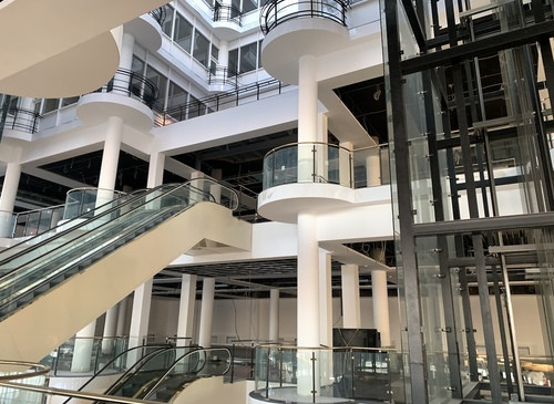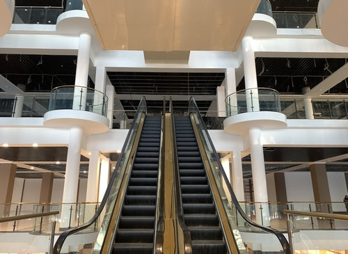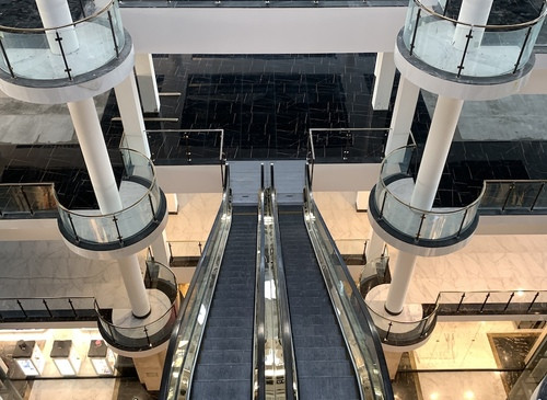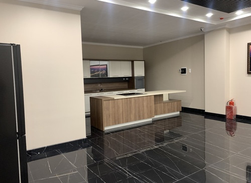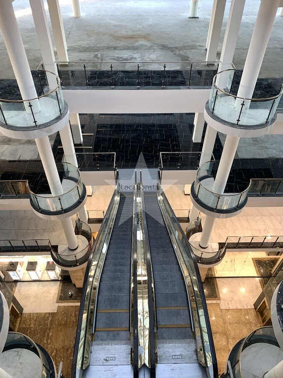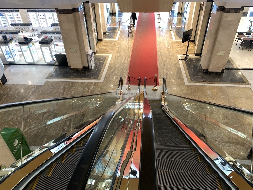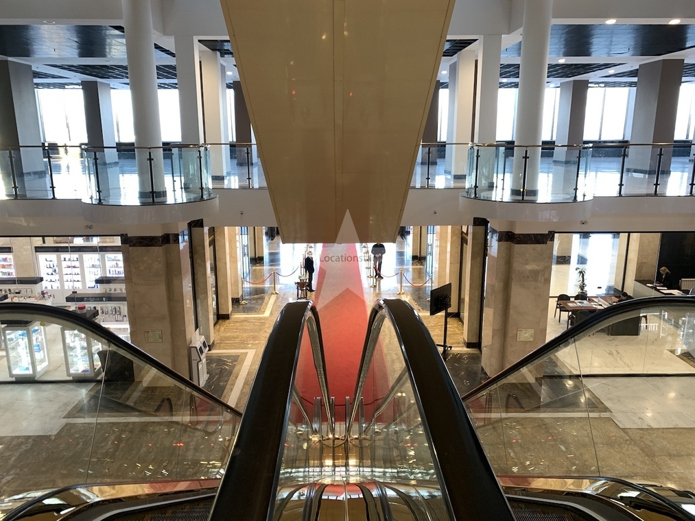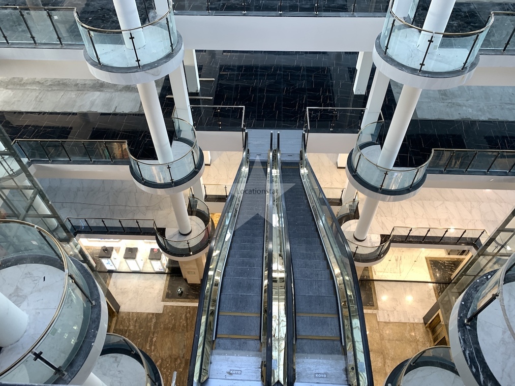 эскалаторами в несколько этажей, отдельной кухней с островком,
