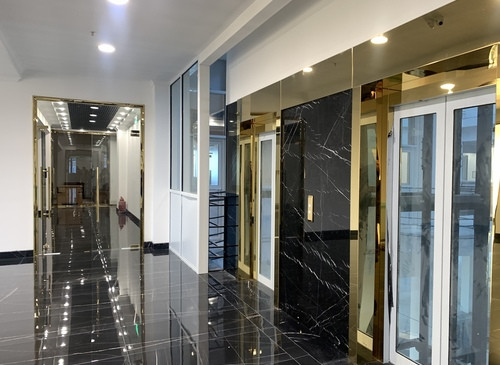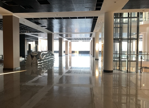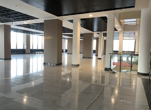 Новый Торгово Деловой Центр в мраморе. Современная архитектура, с отдельной парковкой для кино каравана,
