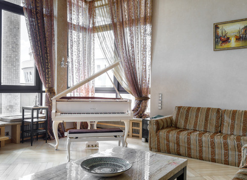 Просторный трёхэтажный пентхаус рядом с метро Ломоносовский проспект, ЖК Воробьёвы горы. Просторная гостиная с камином и роялем Petrof, огромная лоджия с видами на Москву, 4 спальни, финская сауна и хорошая акустическая система по всему помещению. О ПЕНТХАУСЕ