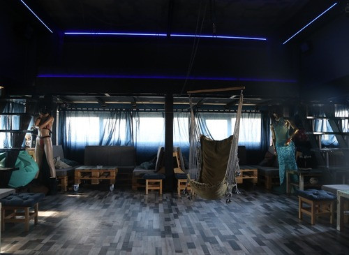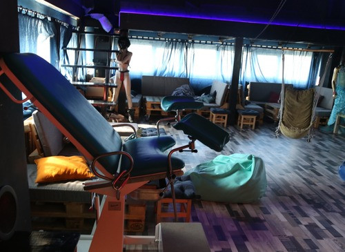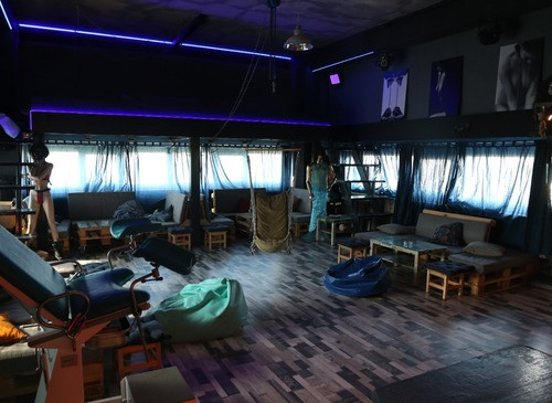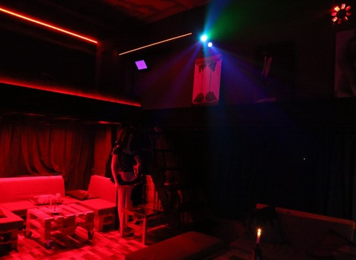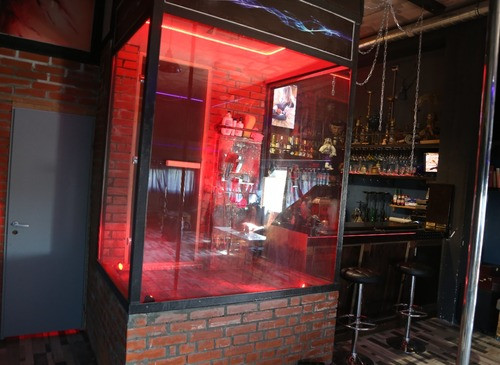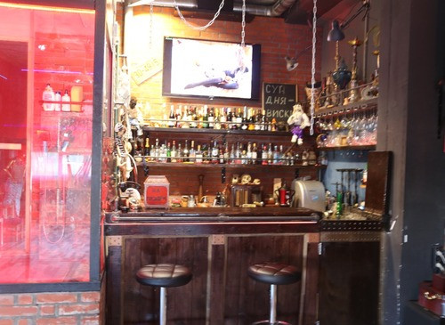 В клубе несколько зон,которые можно рассматривать каждая как отдельный арт-объект.