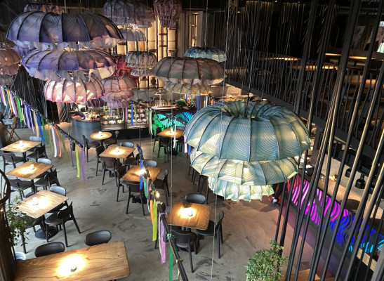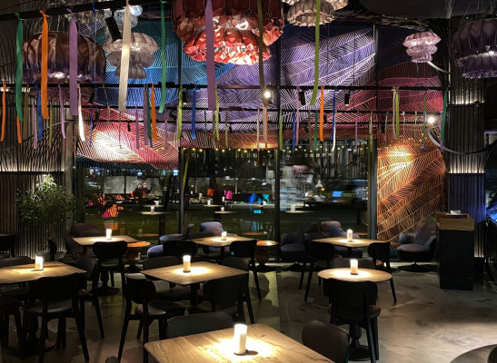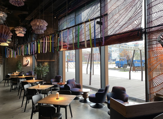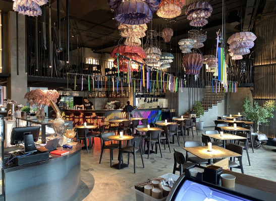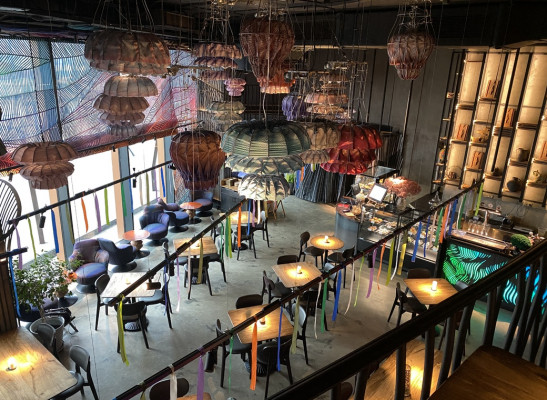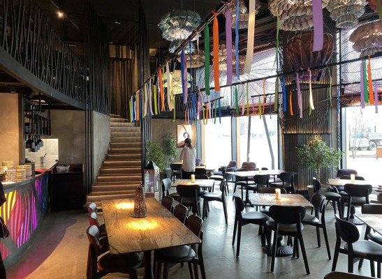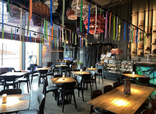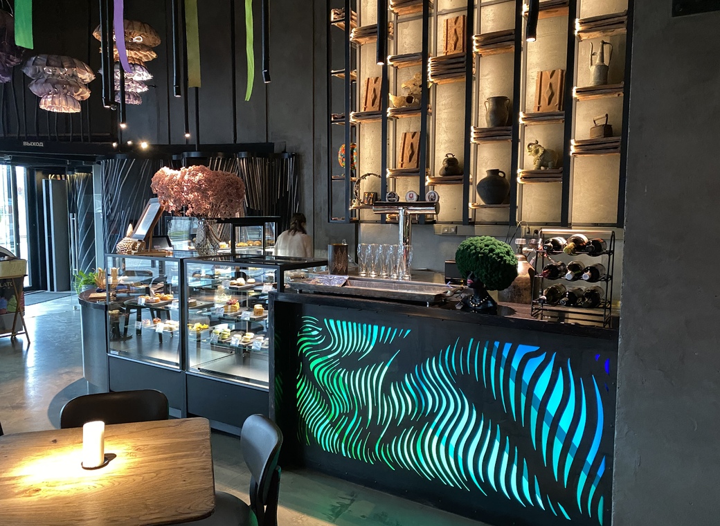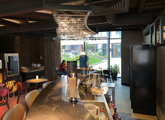 Гриль, пекарня, кондитерская, кофейня, бар и кухня!Гостей принимаем в просторном зале со вторым этажом и панорамными окнами. Барная стойка, открытая кухня, гриль, эксклюзивные кинетические люстры, старинная черепица и театральный занавес - все органично вписывается в интерьер.